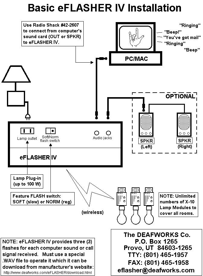 Click here to go back to Main Click here for ordering a free Catalog Click here for ordering a product via Online Click here to contact us DEAFWORKS Computer Products Click here to learn about eFLASHER family Click here for guide to the right eFLASHER Click here for an eFLASHER Comic Strip Click here for eFLASHER I information Click here for eFLASHER II information Click here for eFLASHER III (to refresh this page) Click here for eFLASHER IV (to refresh this page) Click here for eFLASHER V information Click here for eFLASHER VI information Click here for eFLASHER VII Click here for eFLASHER VII information Click here for eFLASHER download files Click here for Self-test